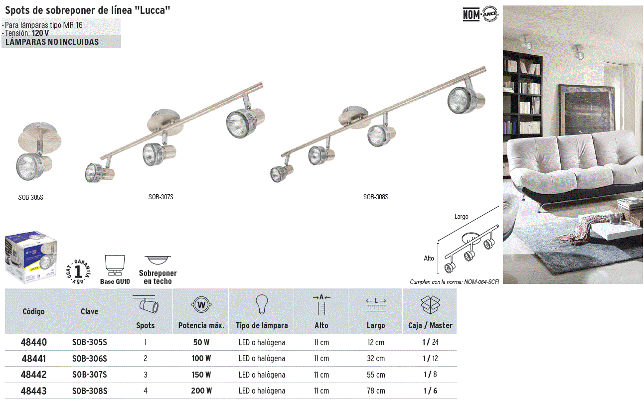 Para 3 focos MR 16 de 50 W maximo, no incluido