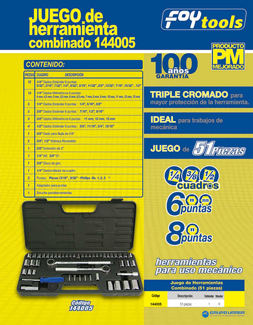 Juego combinado de herramienta 51 piezas, con estuche plástico Foy
