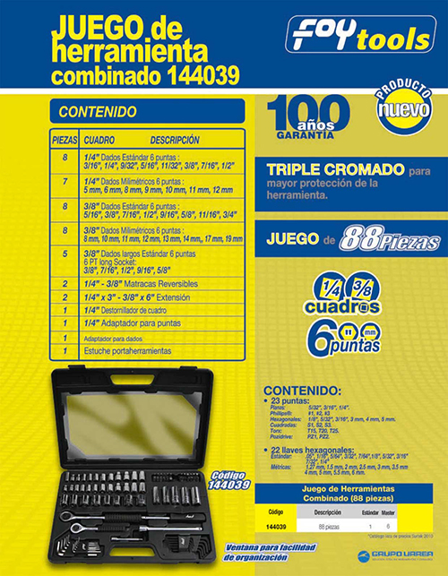 Juego combinado de herramienta 88 piezas, con estuche plástico Foy