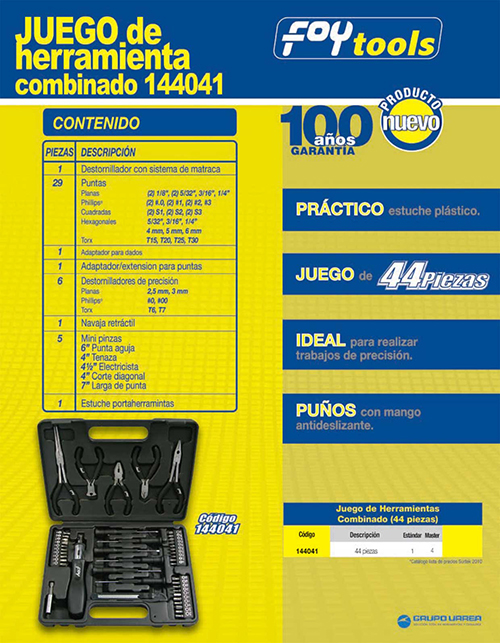 Juego combinado de herramienta 44 piezas, con estuche plástico Foy
