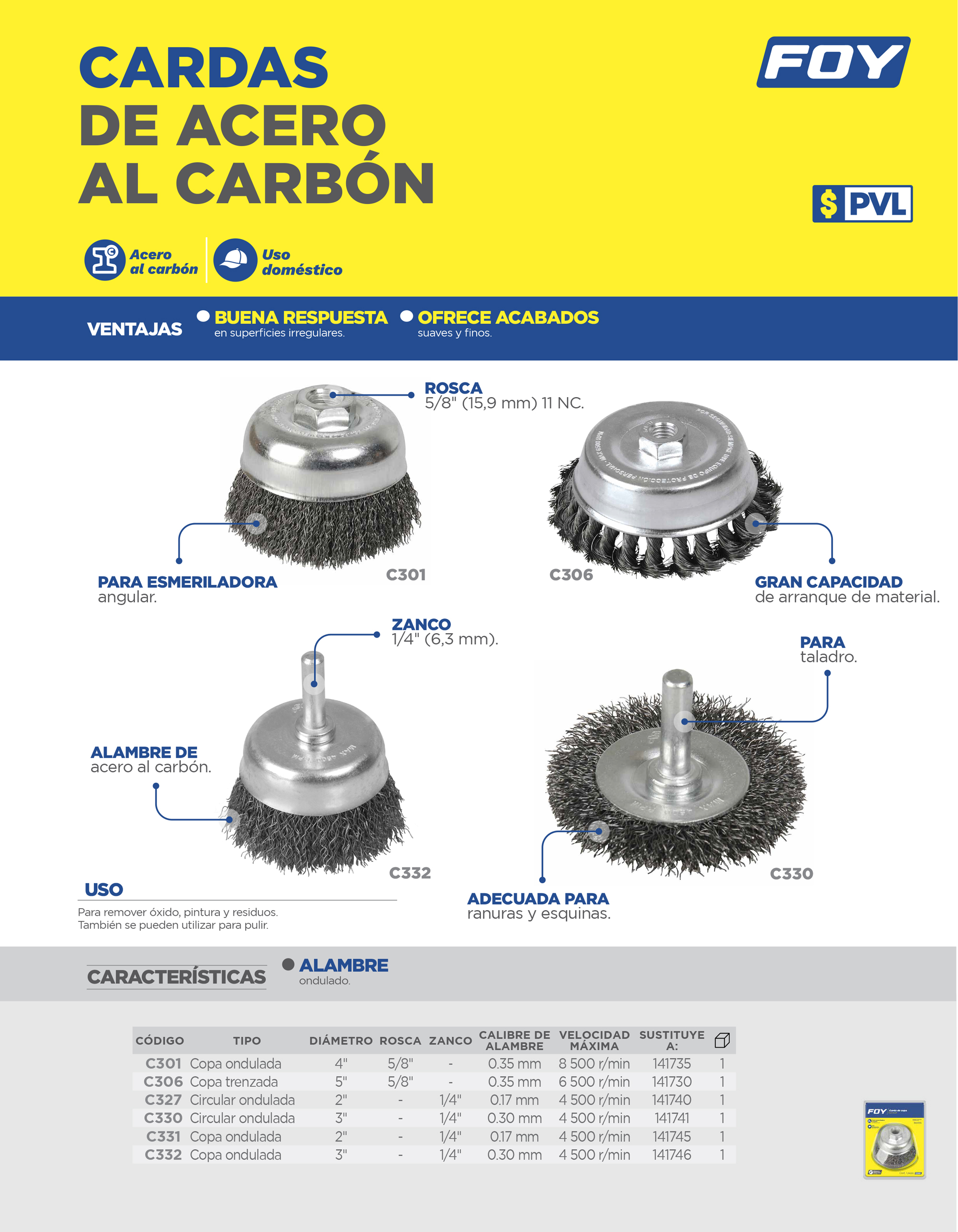 Carda copa ondulada alambre delgado 4" x 0.35 mm con rosca 5/8" Foy