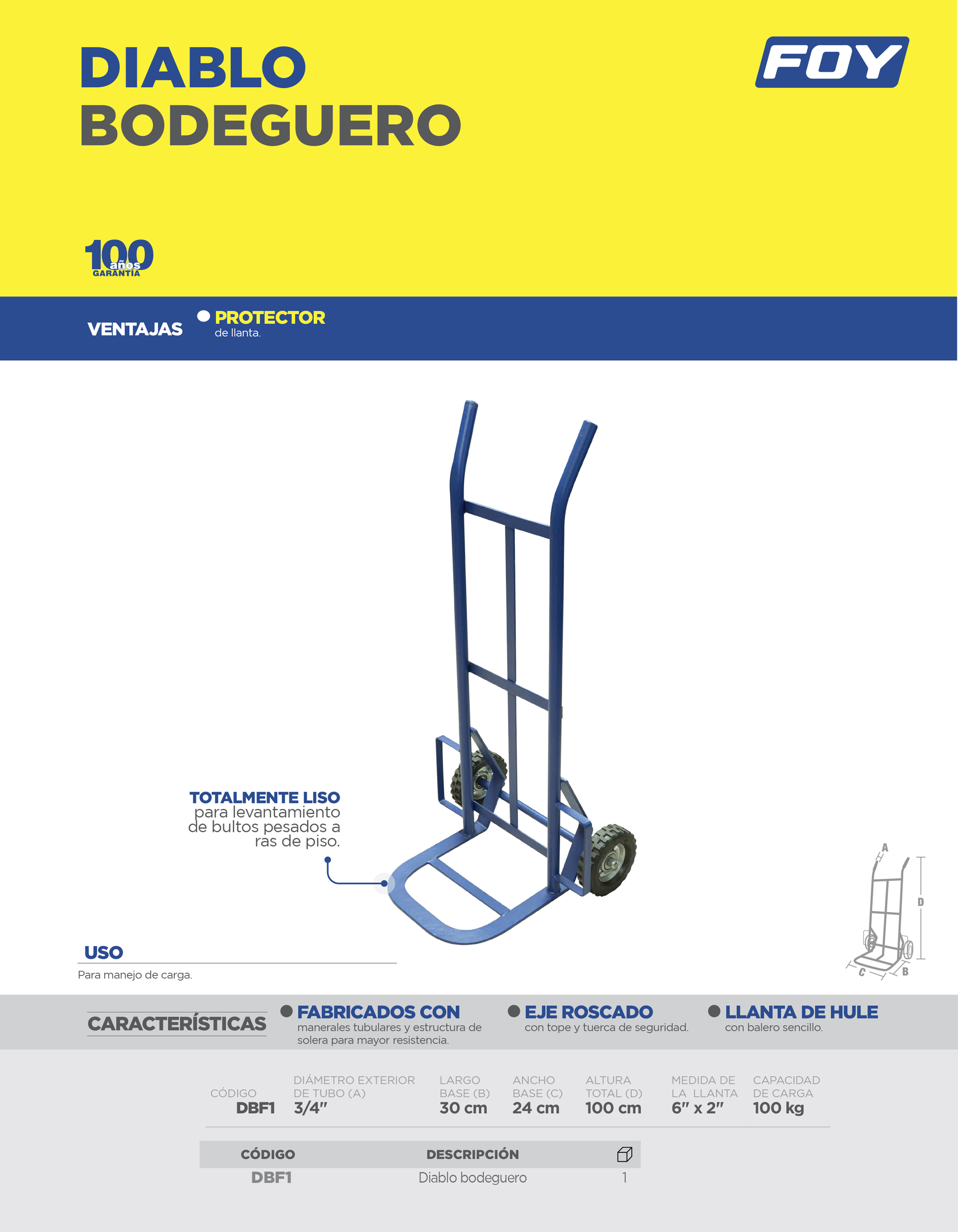 Diablo bodeguero capacidad 100 kg azul con llanta sólida Foy