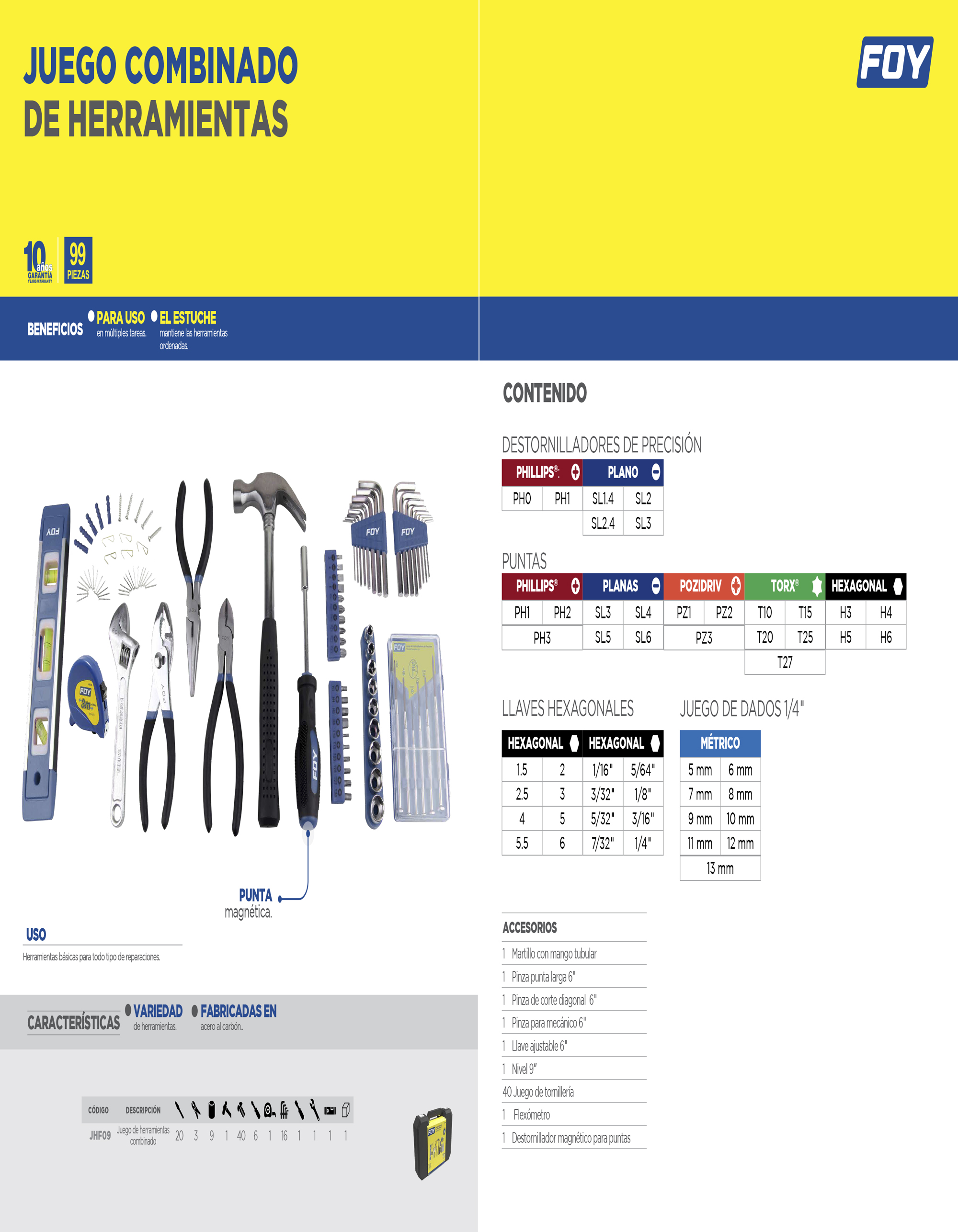 Juego combinado de herramienta 182 piezas, con maleta Foy