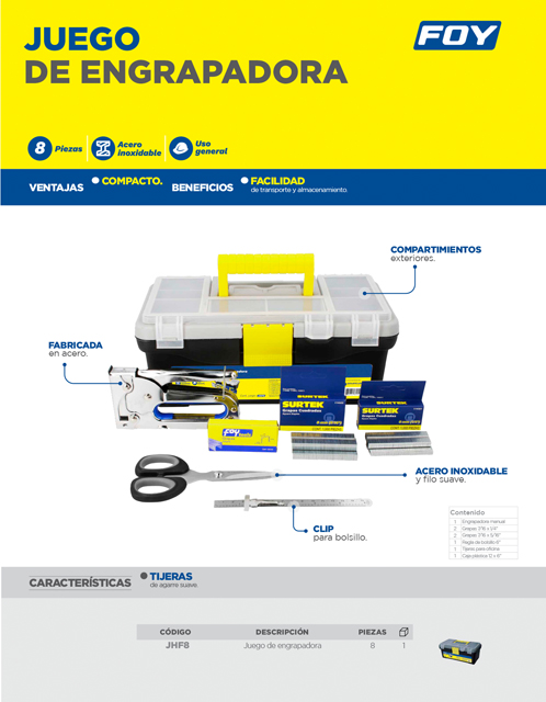 Juego combinado de herramienta 8 piezas, con caja plástica Foy