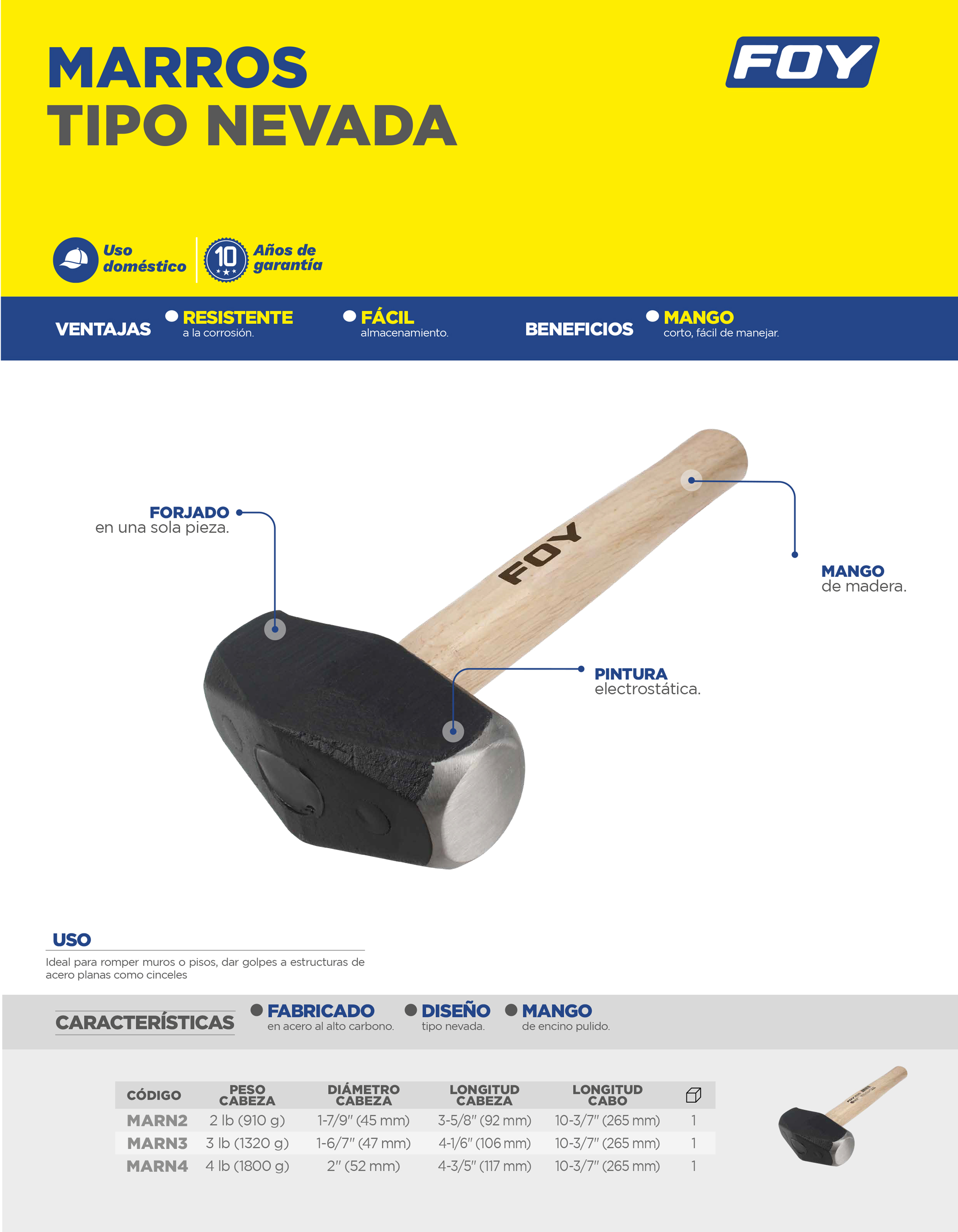 Marro tipo nevada con mango corto de madera de 12", 3 lb Foy