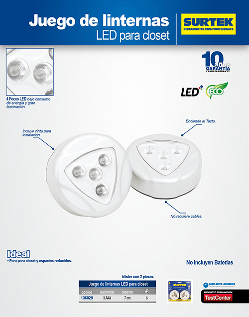 Lámpara de LED para clóset 3 pilas "AAA" de 30 lm, 2 piezas Surtek