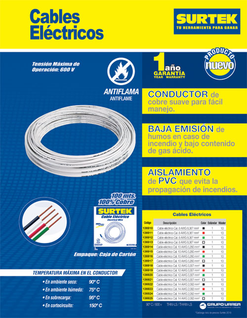 Cable eléctrico THW calibre 14, 100 m color negro Surtek