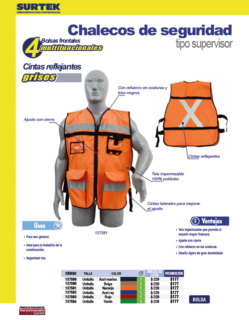 Chaleco de seguridad tipo supervisor abierto con reflejante azul unitalla Surtek