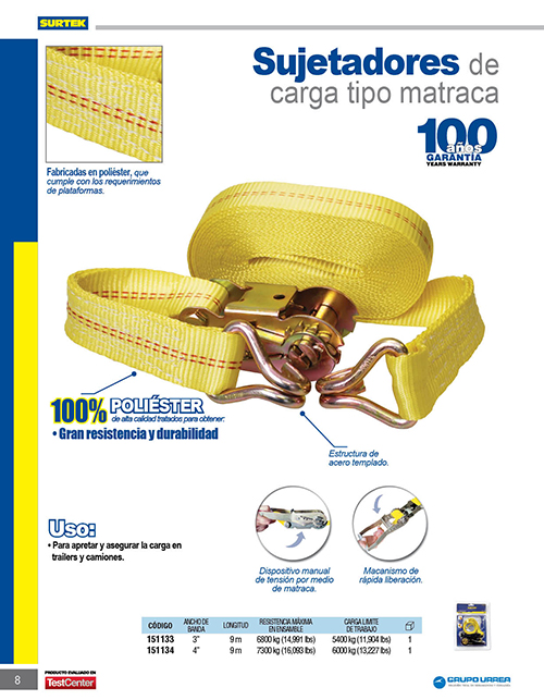 Sujetador con matraca con gancho tipo alambre 2,450 kg Surtek
