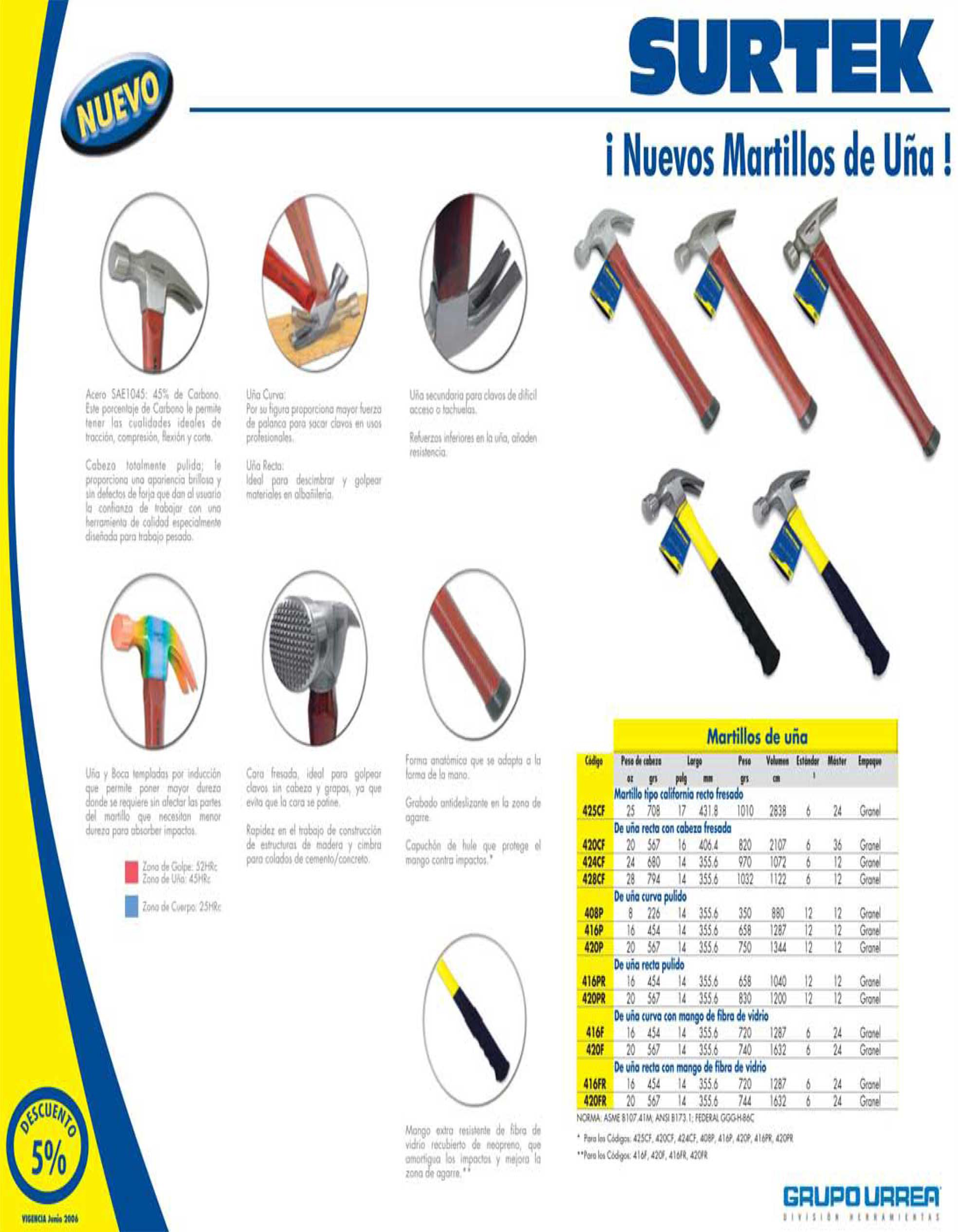 Martillo de uña recta con cabeza fresada con mango de madra de 16", 20 oz Surtek