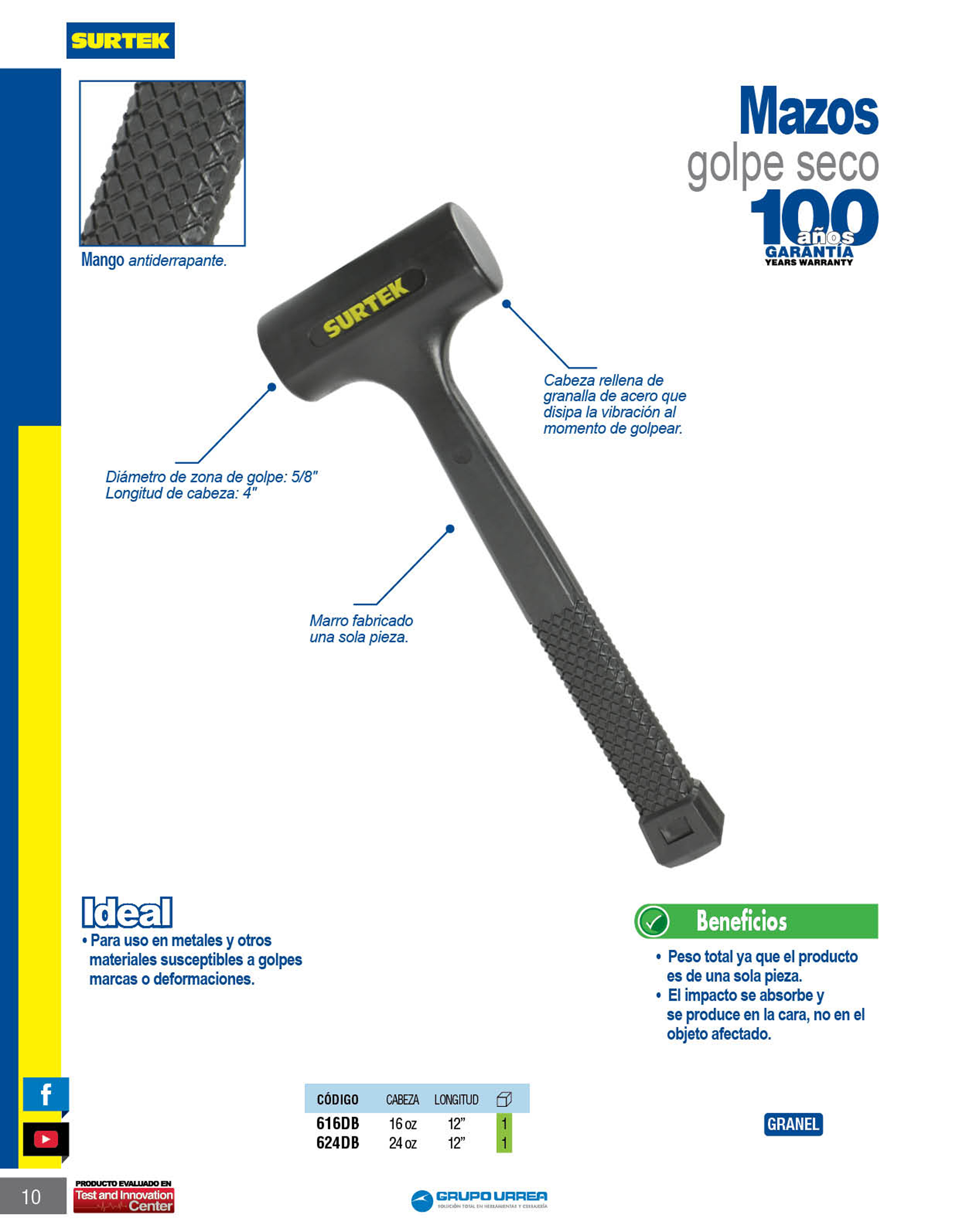 Mazo de golpe seco de una sola pieza con mango antiderrapante de 12", 16 oz Surtek