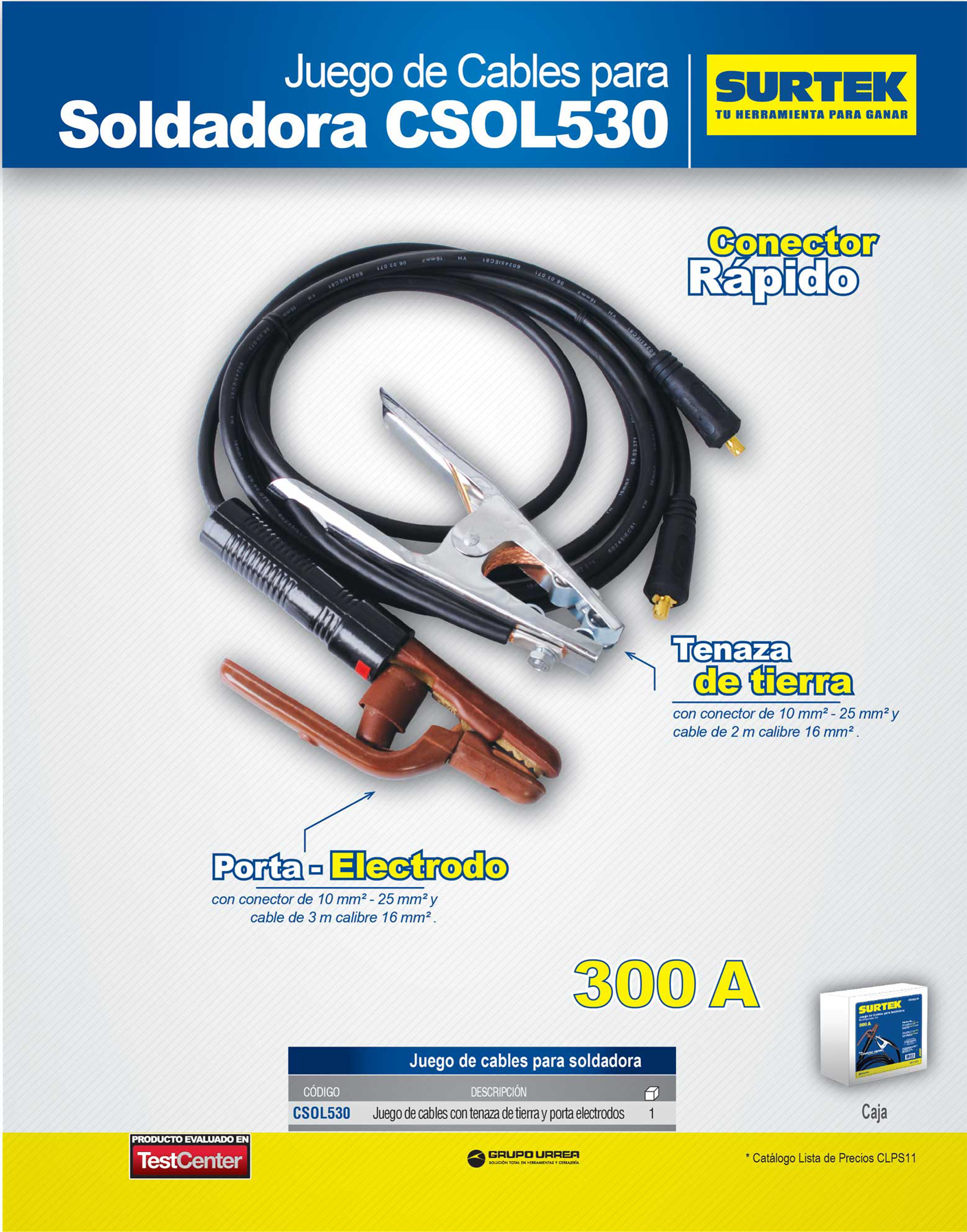 Juego de cables para soldadora 300 A, 3 m Surtek