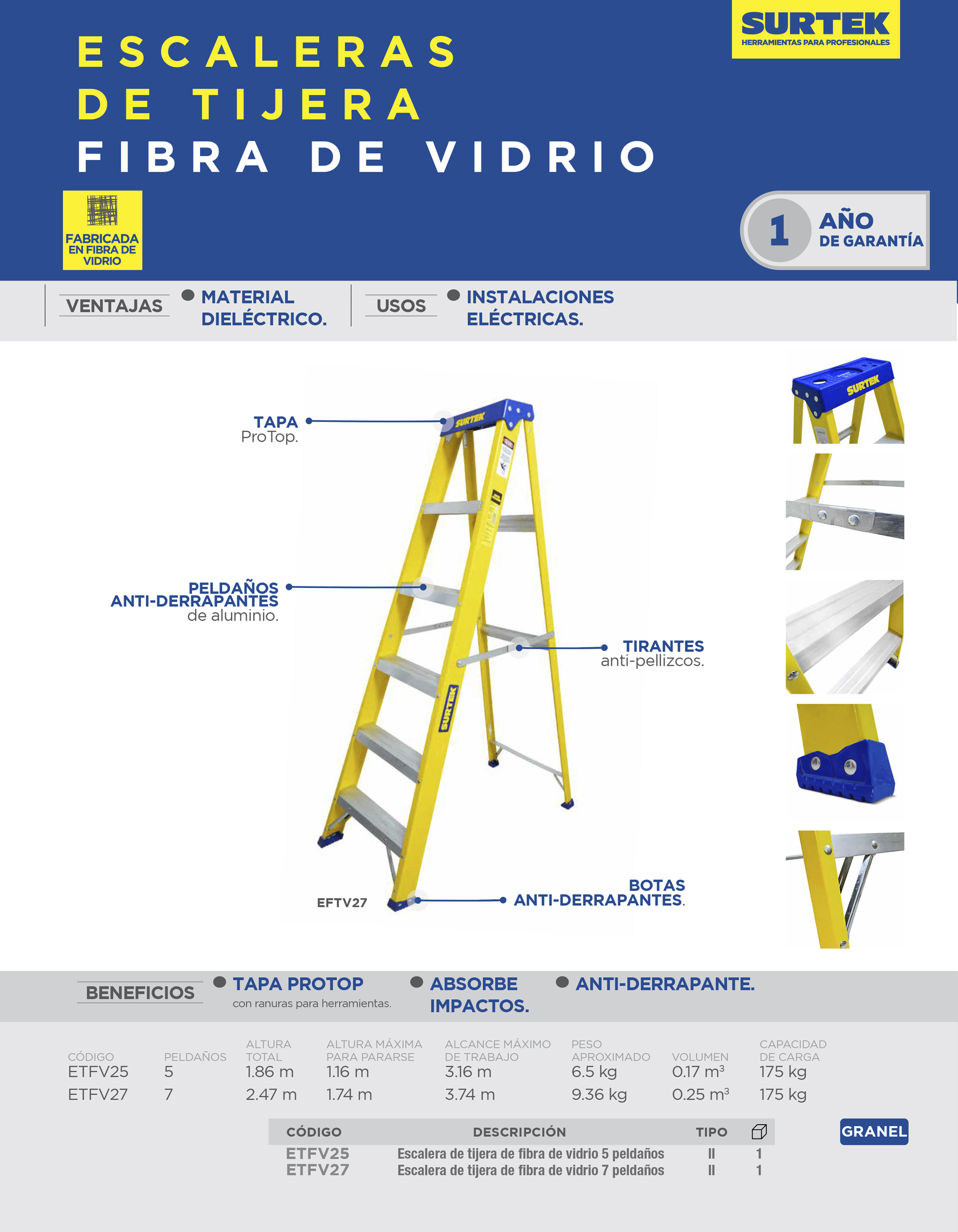 Escalera de tijera tipo II de fibra de vidrio con 5 peldaños Surtek