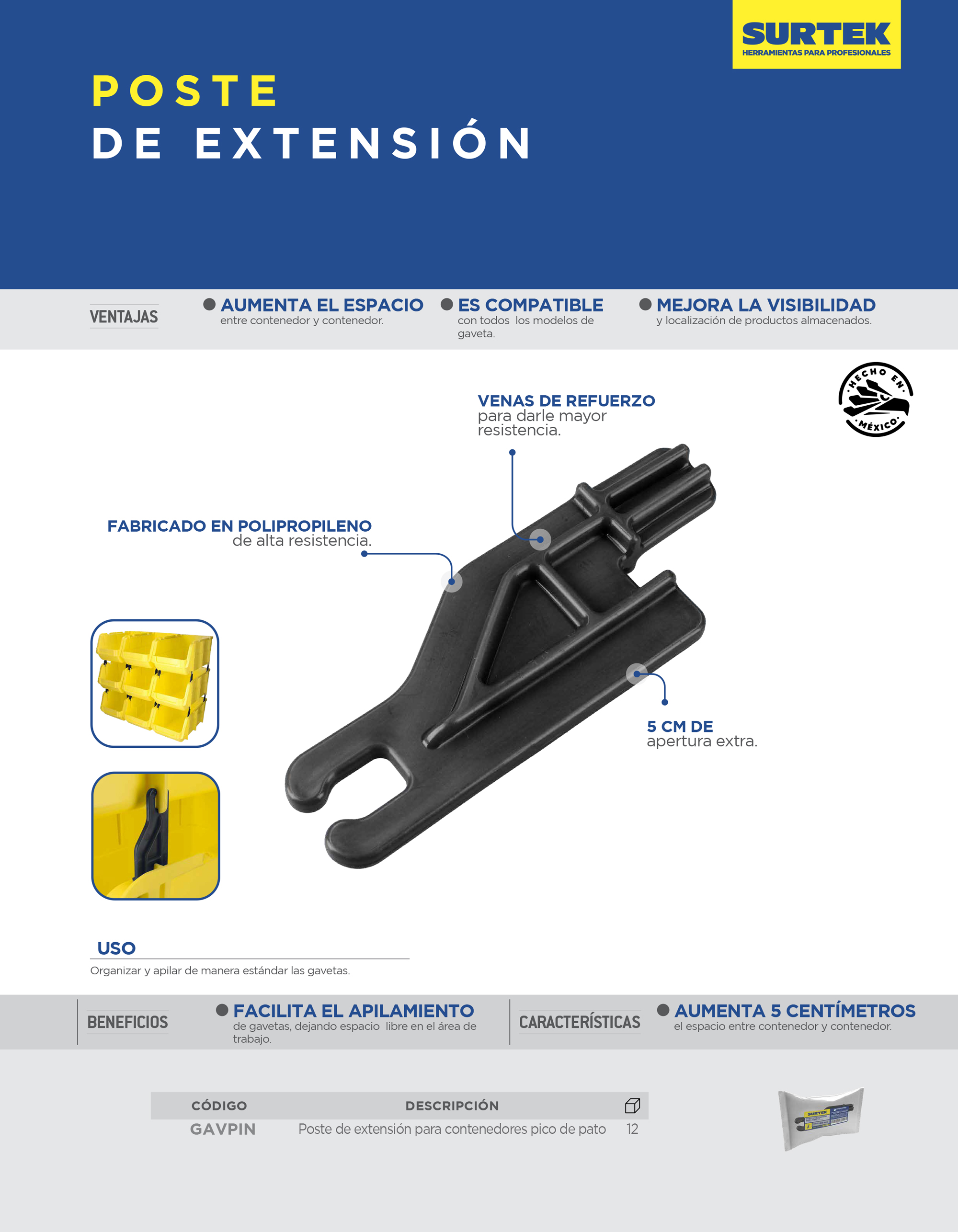 Poste de extensión para gaveta plástica pico de pato Surtek