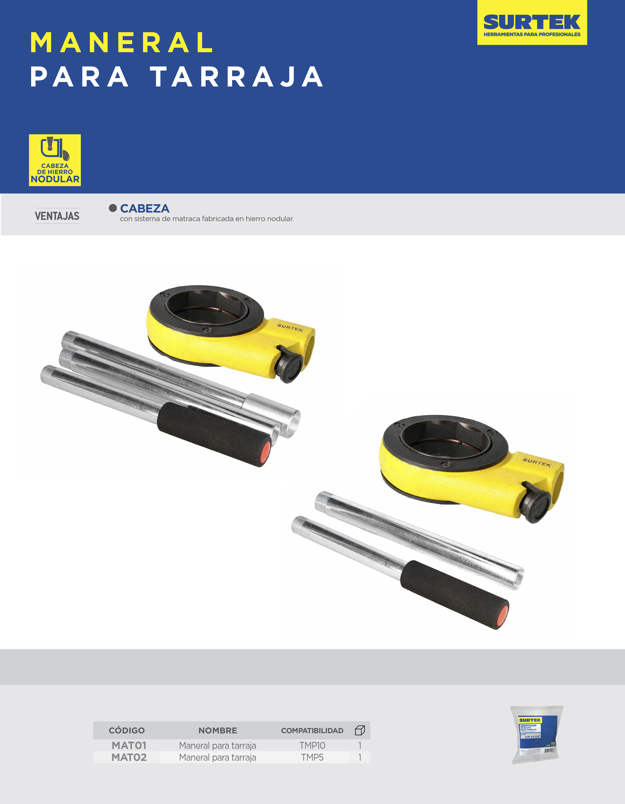 Maneral para dados de tarraja de 1/4" a 1-1/4" Surtek