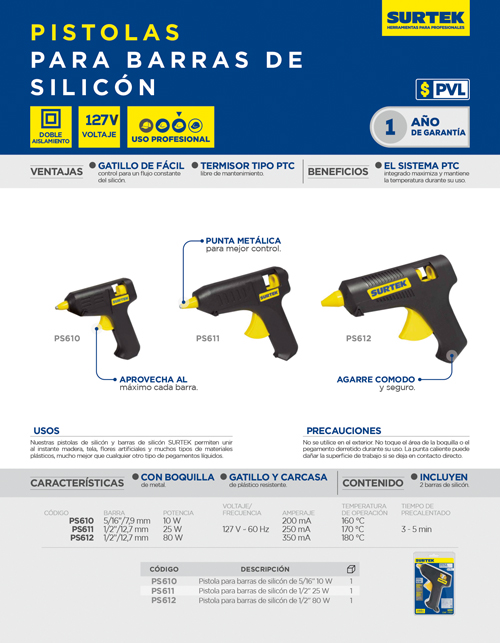 Pistola para barras de silicon 1/2" 80 W Surtek