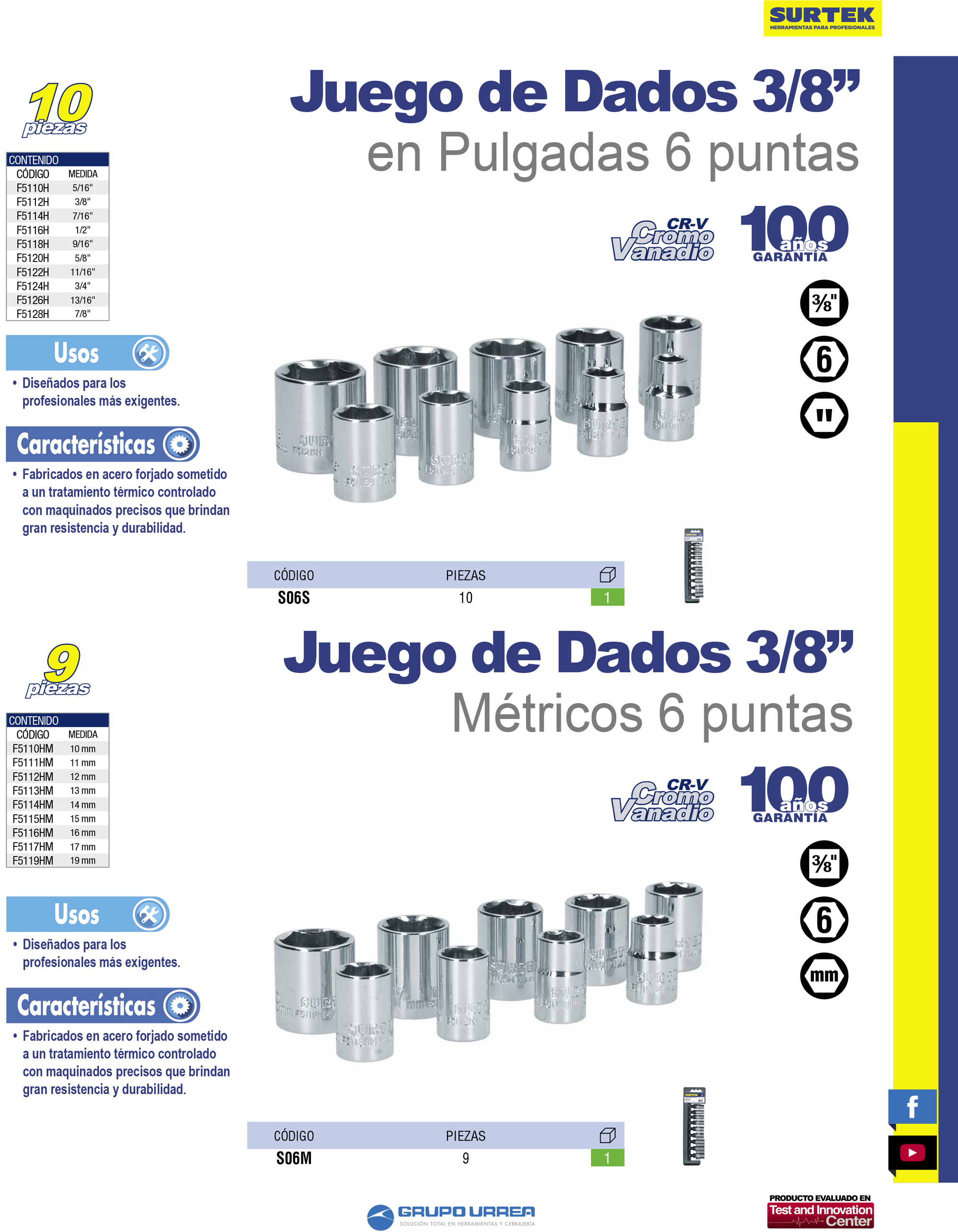 Juego de dados cuadro de 3/8", 6 puntas, en pulgadas, 10 piezas Surtek