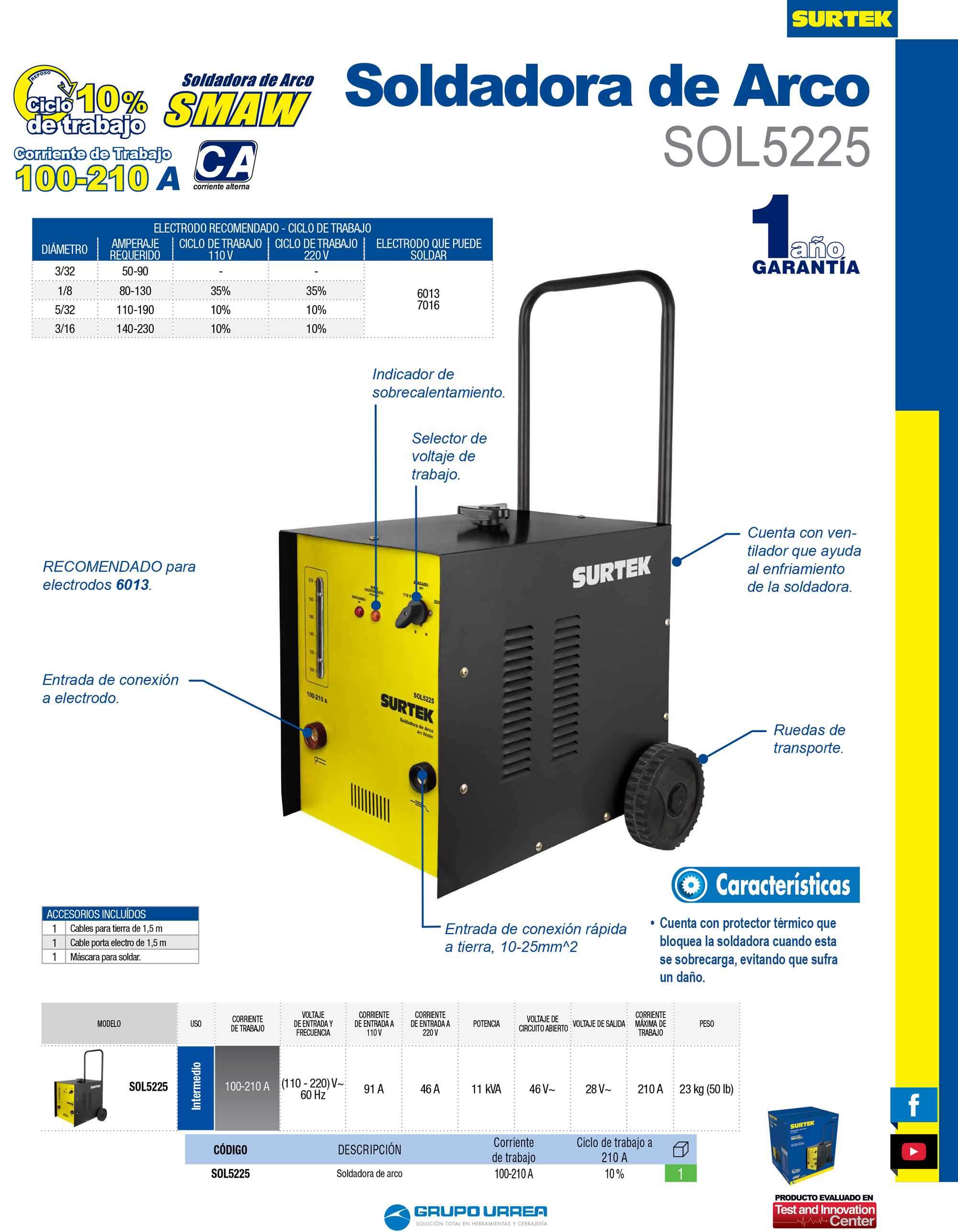 Soldadora de transformador por arco para electrodos 110 - 220 V, 100 - 210 A Surtek