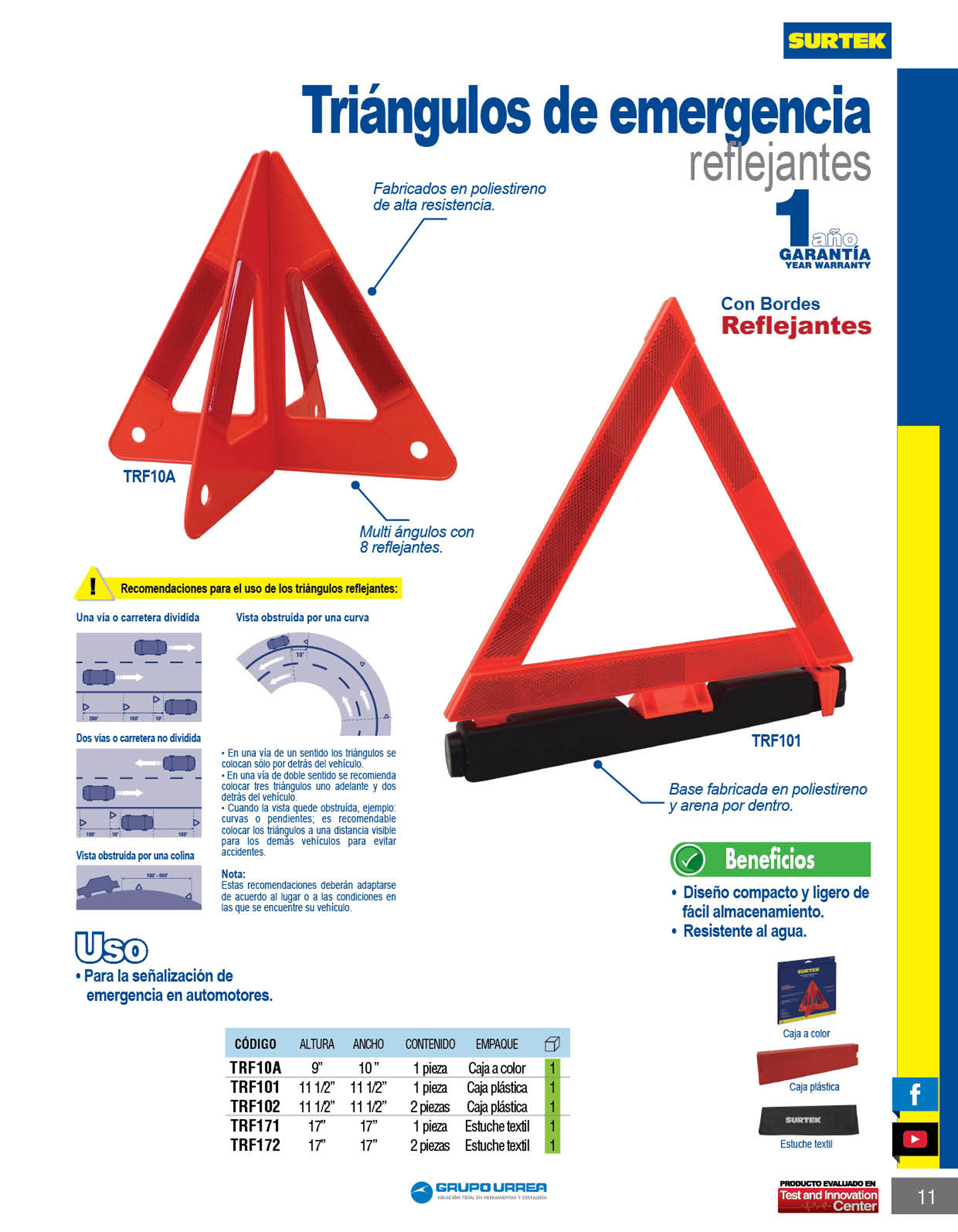 Triángulo reflejante de emergencia con base con arena, 17", 2 piezas Surtek