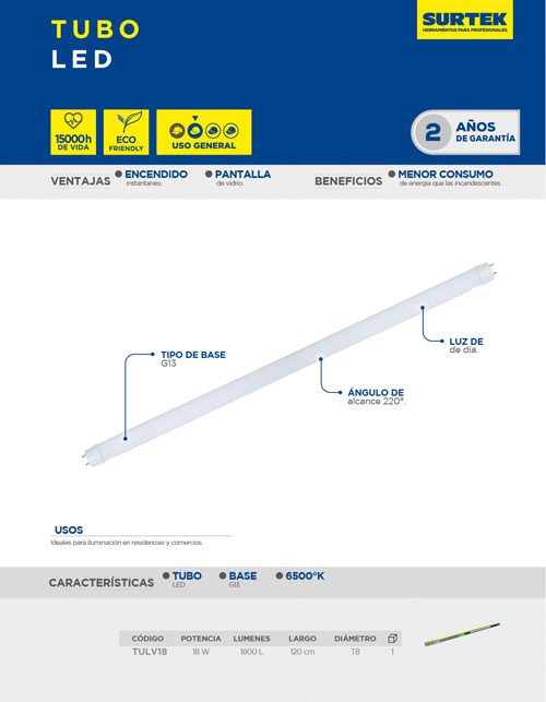 Código: Surtek-TULV18 Clave: TULV18 SKU: 660731000351