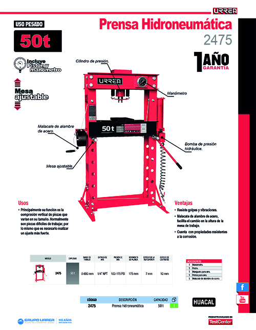 Código: Urrea-2475 Clave: 2475 SKU: 660731901160