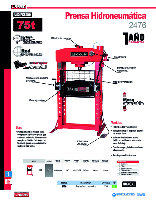 Código: Urrea-2476 Clave: 2476 SKU: 660731901177