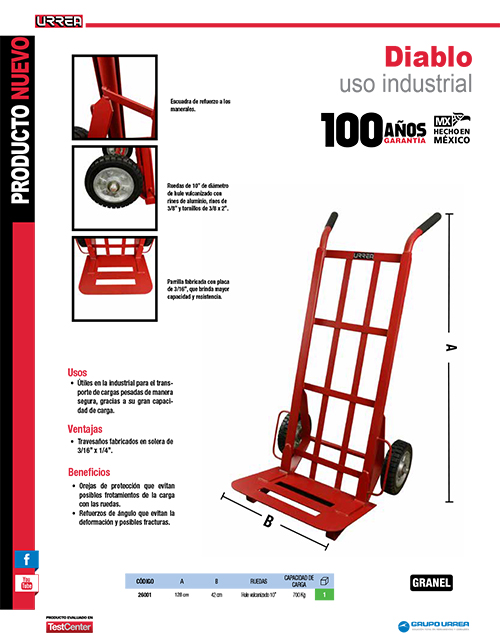 Diablo bodeguero capacidad 700 kg Urrea