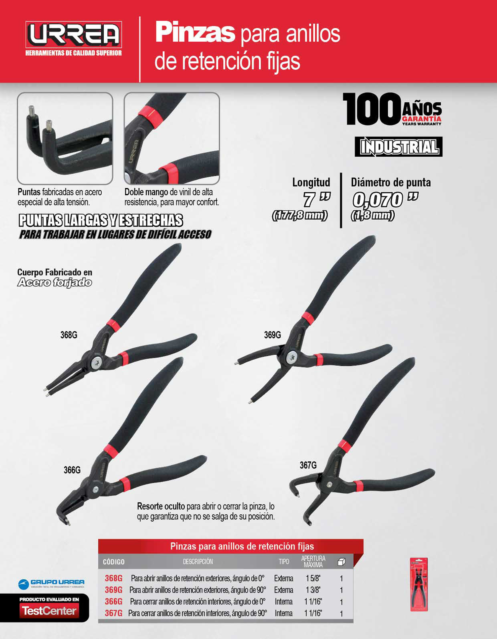 Pinza para anillos de retención con mango de vinil forjadas tipo interno ángulo de 0° Urrea