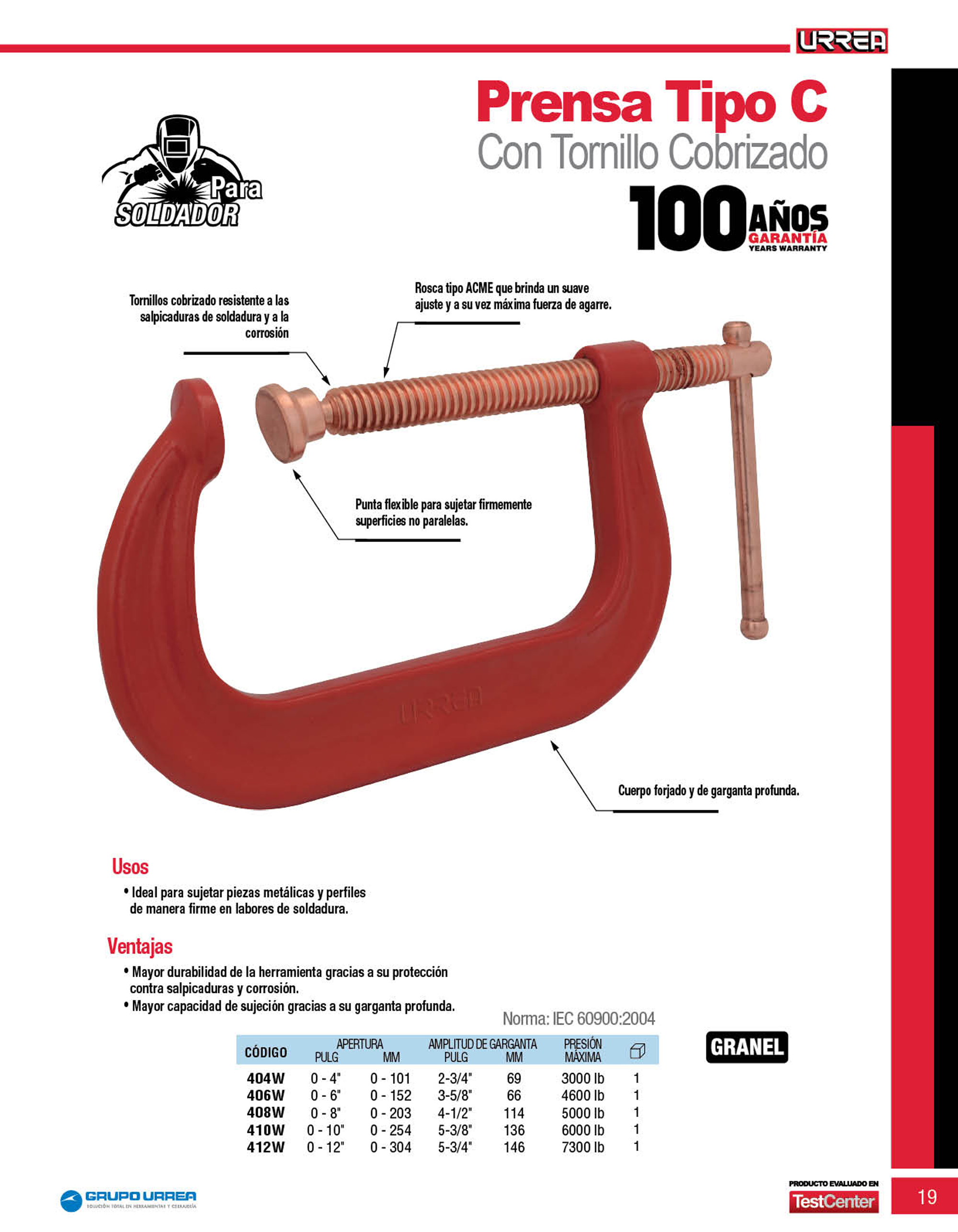 Prensa tipo "C" de 10" forjada, garganta profunda para soldar Urrea