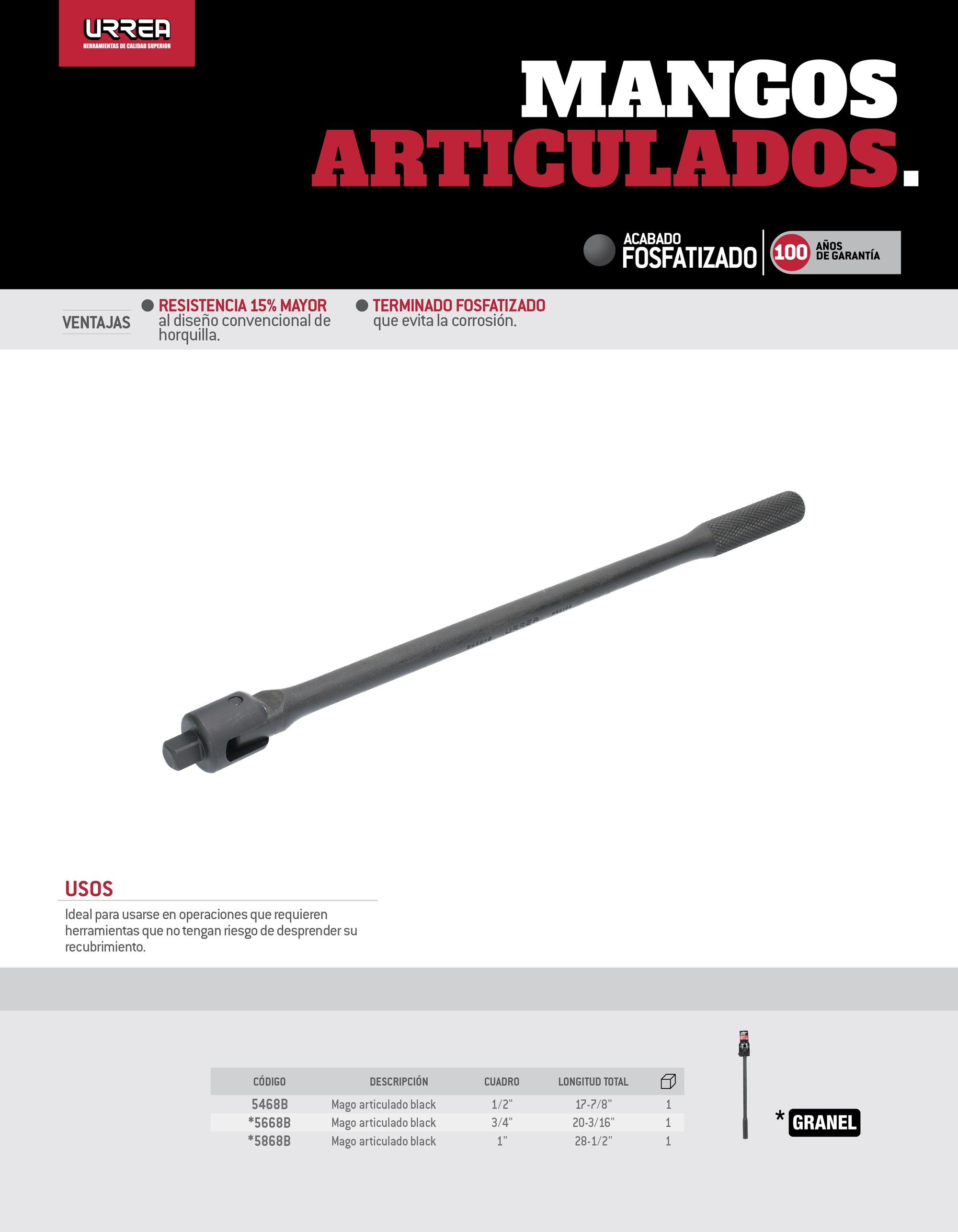 Mango articulado fosfatizado para dado cuadro de 1/2", 17-7/8" Urrea