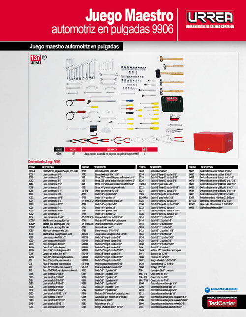 Código: Urrea-9906 Clave: 9906 SKU: 660731624038