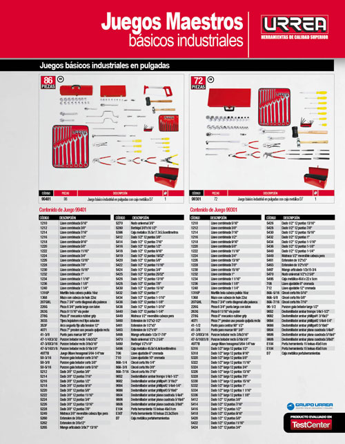 Juego básico industrial en pulgadas 86 piezas, con caja D7 Urrea