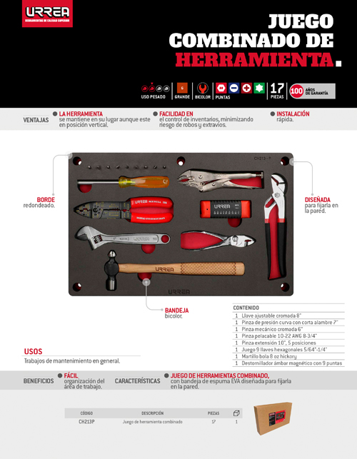 Juego combinado de herramienta 8 piezas, CH213P-C Urrea