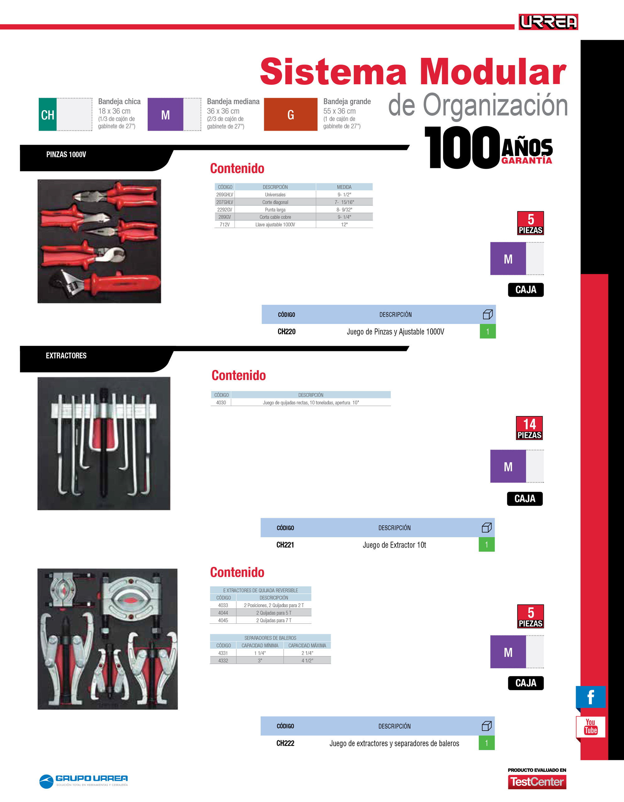 Juego de extractores y separadores de baleros 5 piezas, CH222-C Urrea