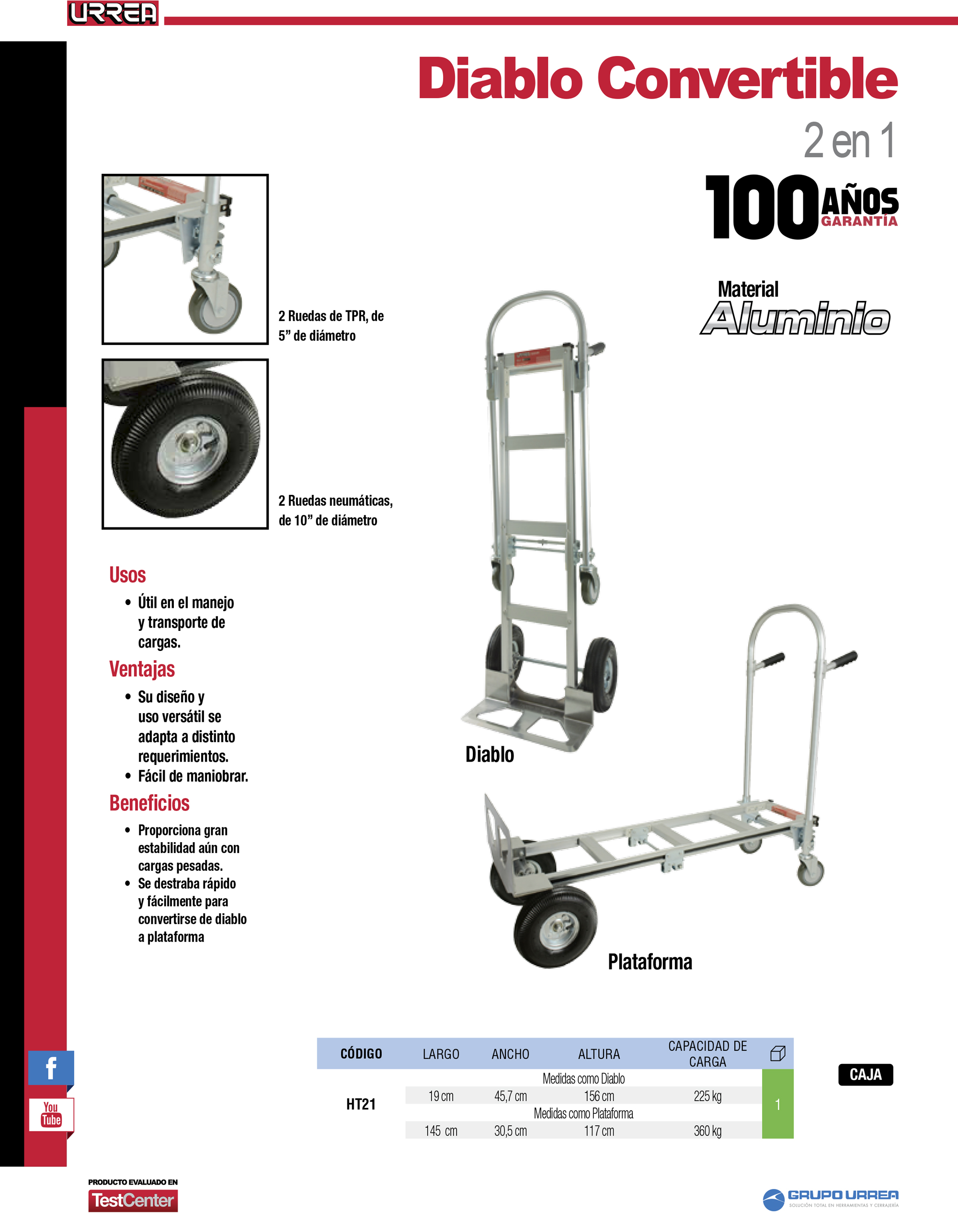 Diablo convertible 2 en 1 de aluminio capacidad 360 kg Urrea