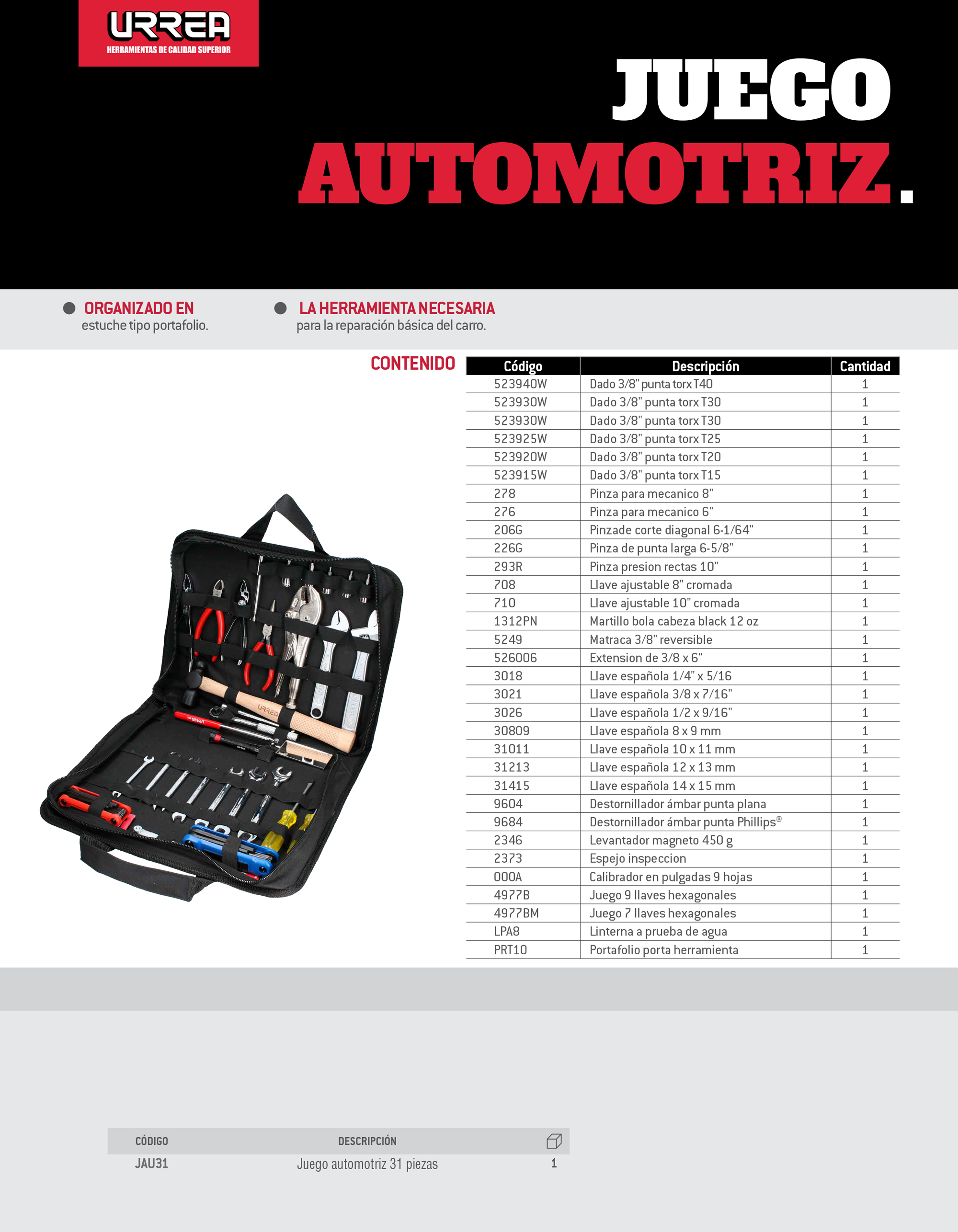 Código: Urrea-JAU31 Clave: JAU31 SKU: 660731915525
