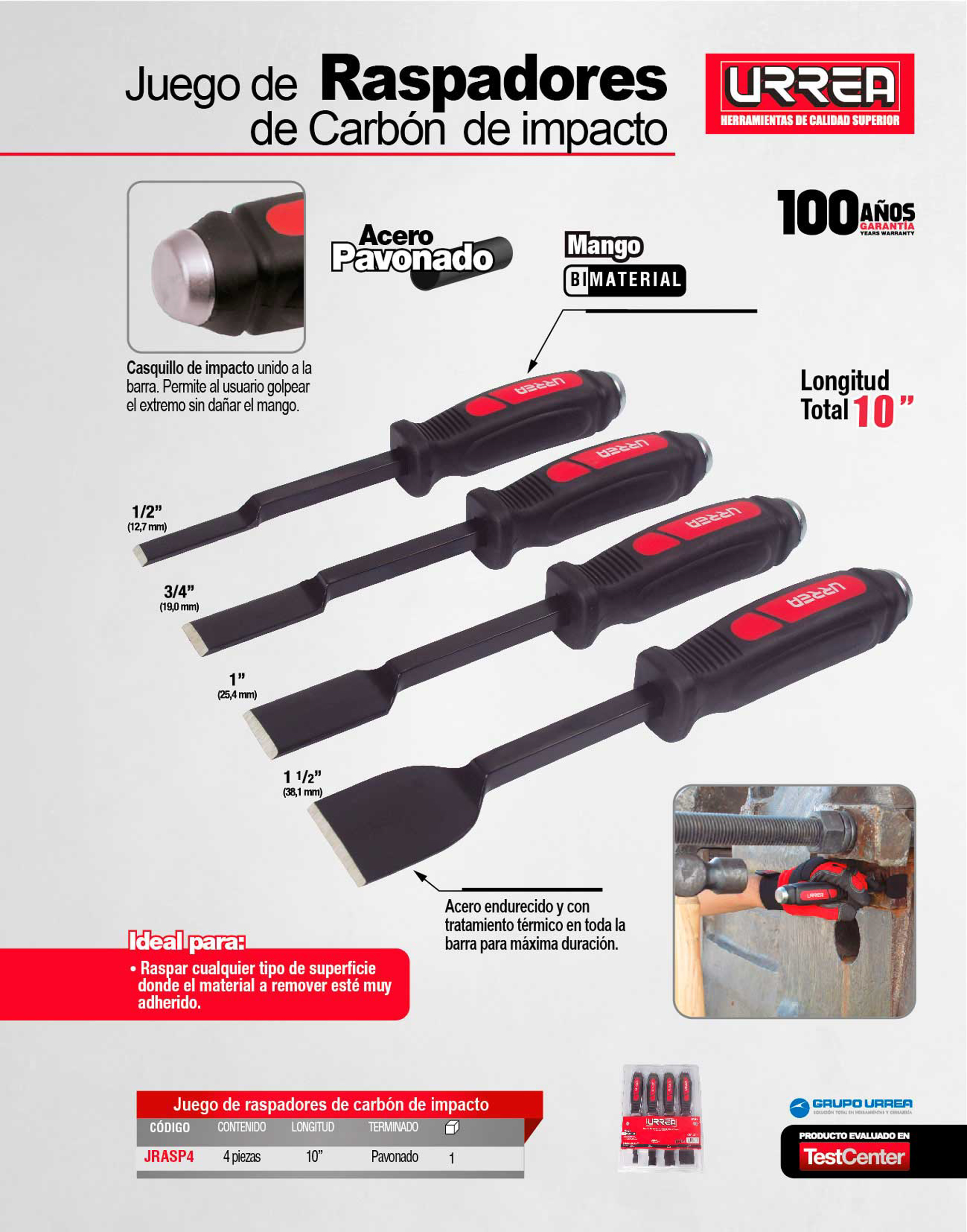 Juego de raspadores de carbón de golpe 10", 4 piezas Urrea