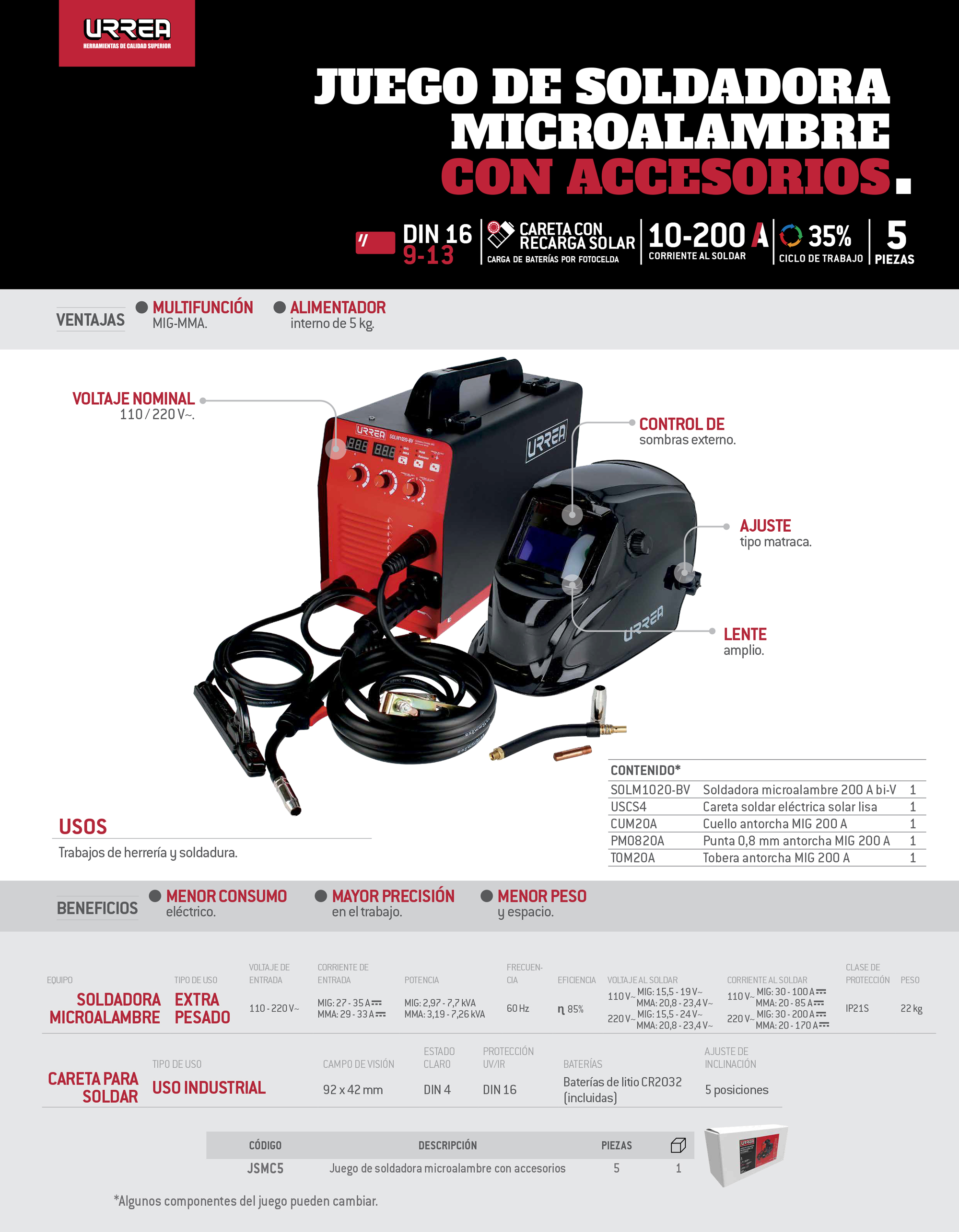 Juego de soldadora microalambre con accesorios, 5 piezas Urrea