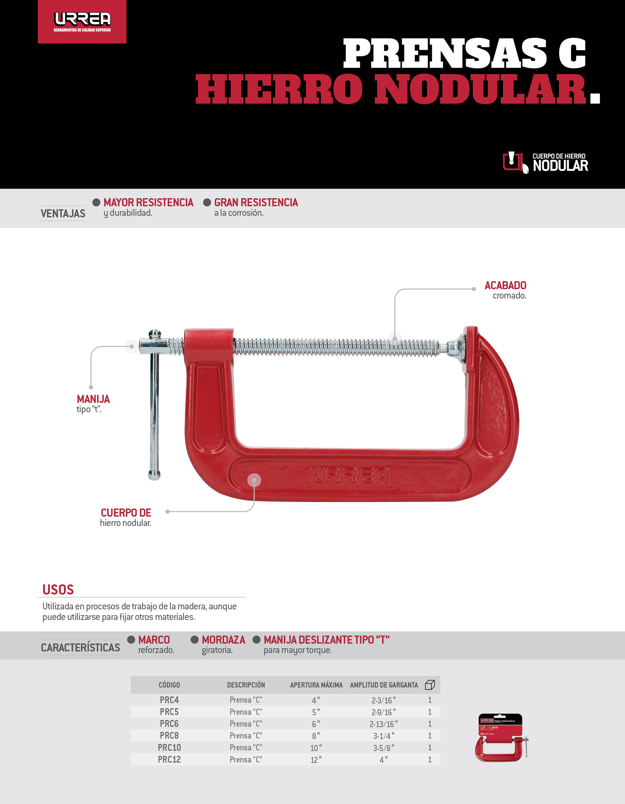 Prensa tipo "C" de hierro nodular 12" Urrea