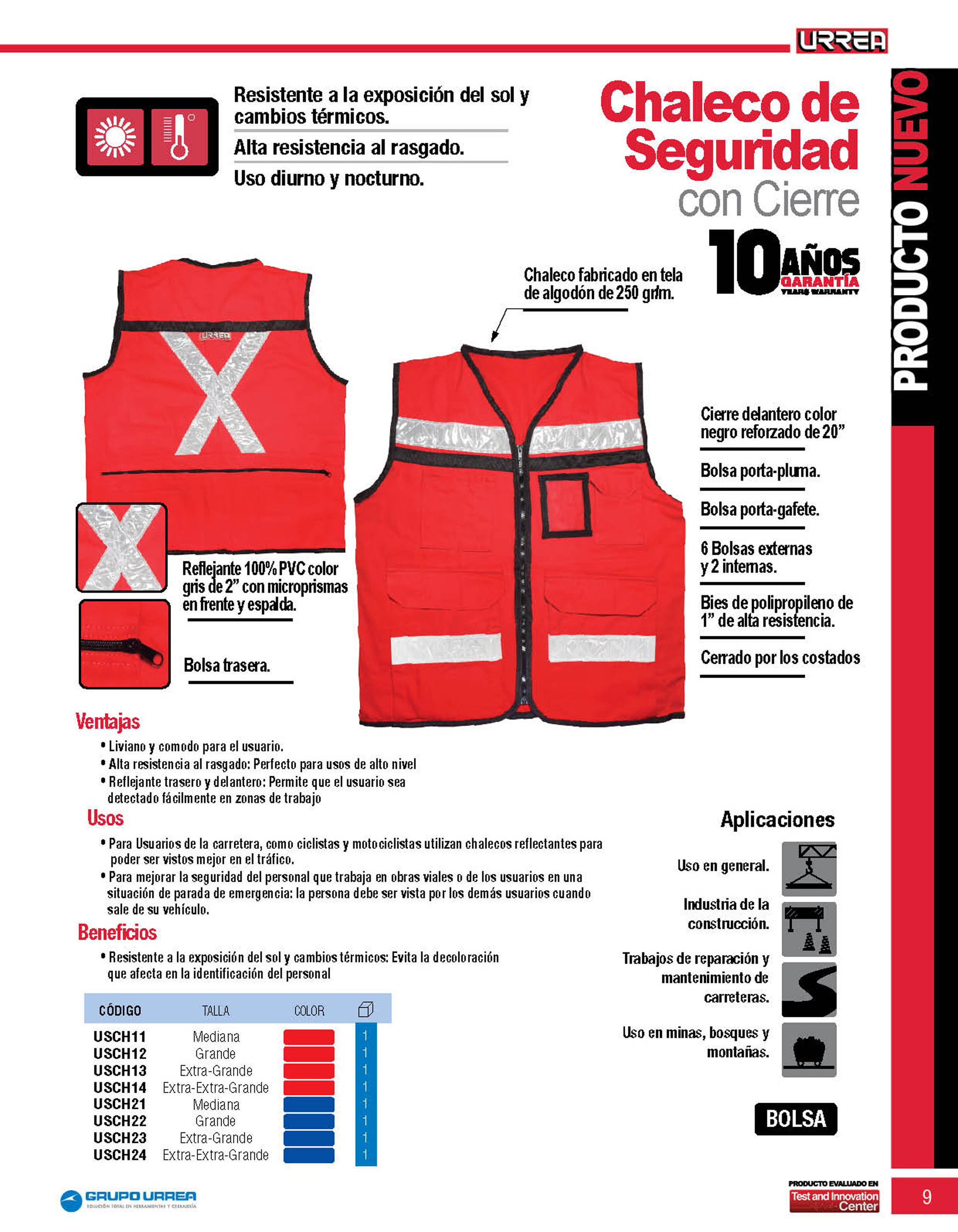 Chaleco de seguridad tipo supervisor cerrado con reflejante rojo G Urrea