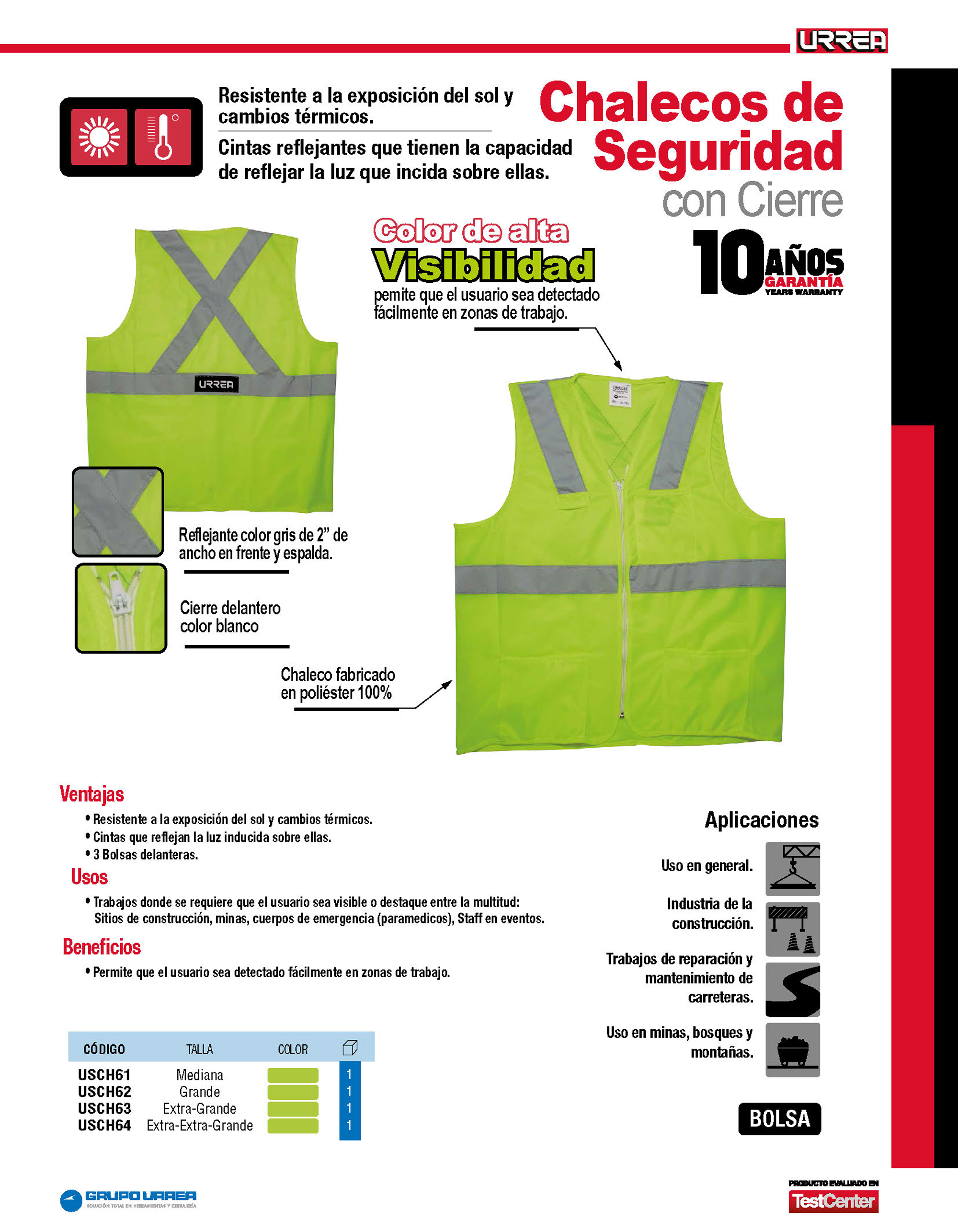 Chaleco de seguridad cerrado de alta visibilidad verde M Urrea